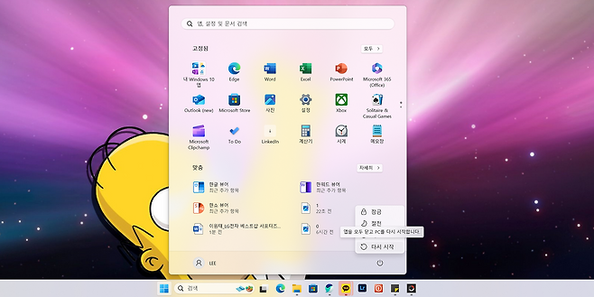 2. 전원 아이콘을 누른 상태에서 'SHIFT 키를 누르고 다시 시작'을 선택하세요.