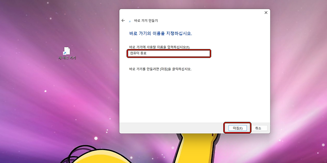 3). 바로 가기 이름을 입력하고 마침을 누르세요.