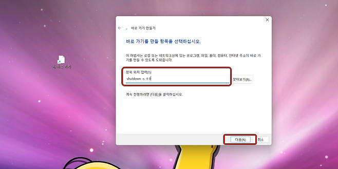 2). 팝업 창에 이 명령어를 입력 후 다음을 선택합니다.