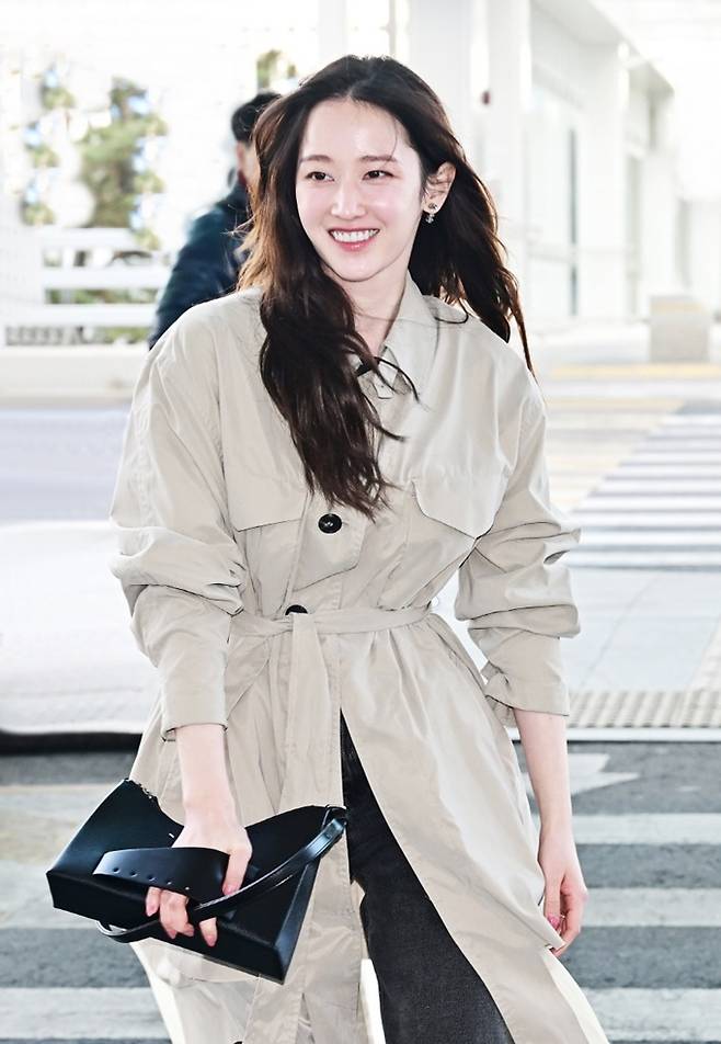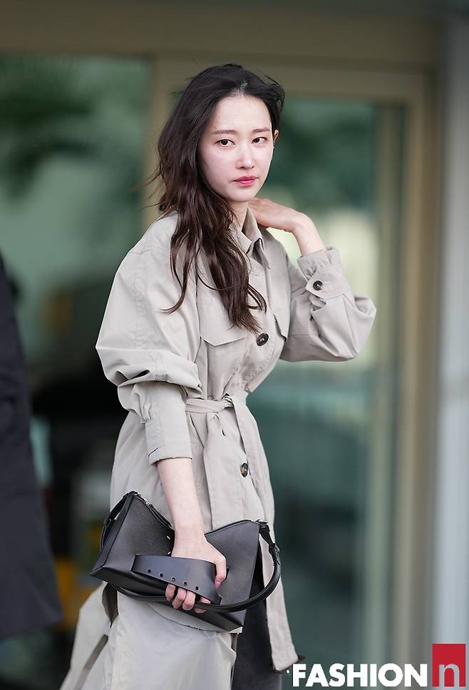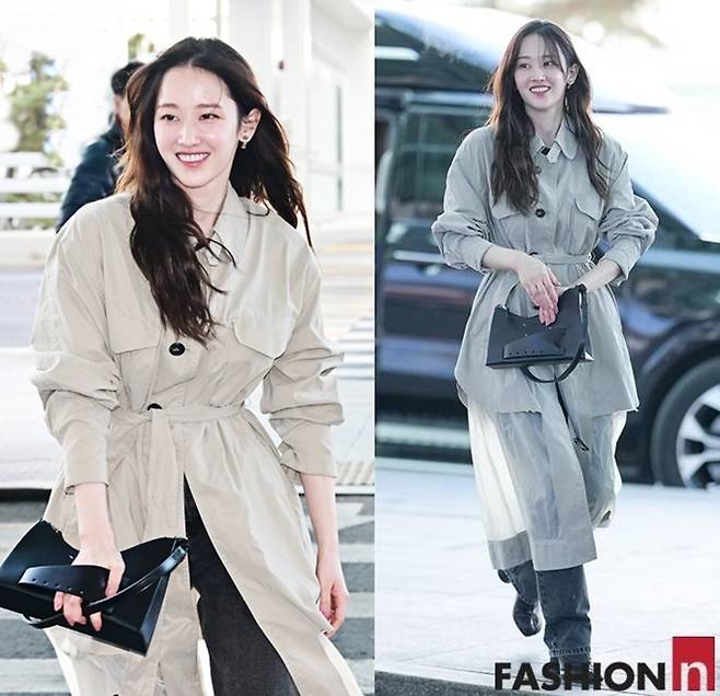 이날 전종서는 강한 한파에도 불구하고 데님 팬츠에 간편한 시스루 벨티드 트렌치코트를 입고 스타일리시하면서도 센스있는 출국룩을 완성했다.
