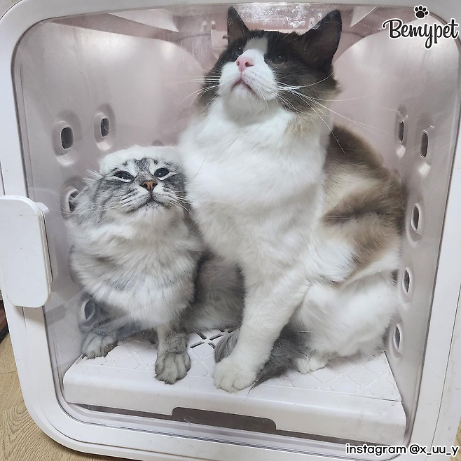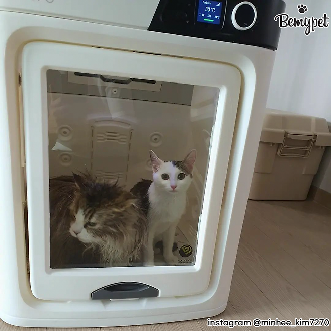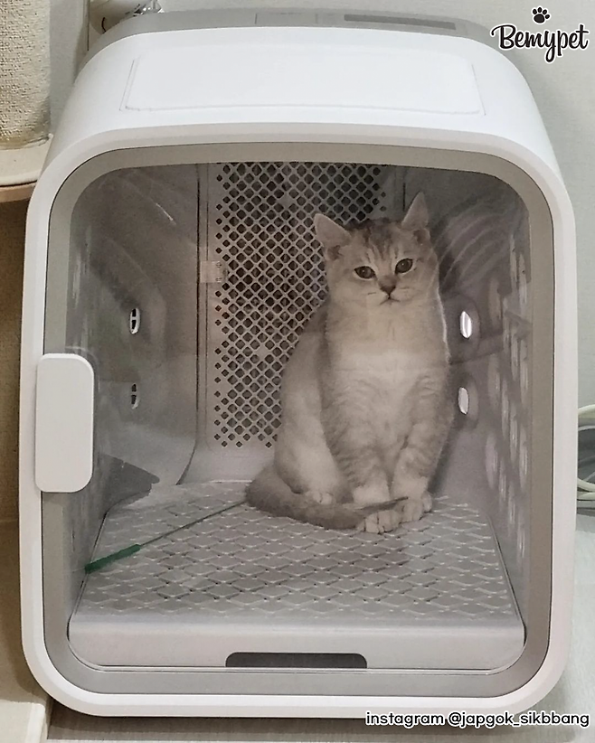 이때, 펫 드라이룸을 사용하면 좋아요. 수건이나 드라이기로 말리기 힘든고양이 배나 겨드랑이, 얼굴 부분까지 바싹 말려주기 때문입니다.