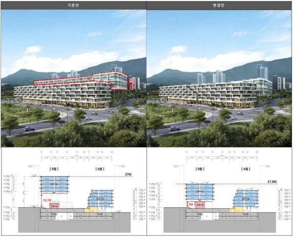 땅집고 취재 결과 A사는 의왕시 제안에 따라 오피스 높이를 기존 40m에서 27.8m로 축소하는 수정 도면을 작성 중인 것으로 확인됐다. A사 관계자는 “당초 오피스 상품성을 높이기 위해 필로티로 건물을 띄워 호수 조망이 가능하도록 설계했는데, 의왕시로부터 필로티를 아예 없애라는 지시를 받아 설계 도면을 수정하고 있다”며 “새 도면은 오는 8월 둘째 주 쯤이면 나올 예정”이라고 말했다.