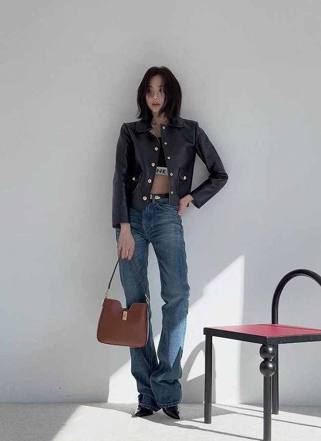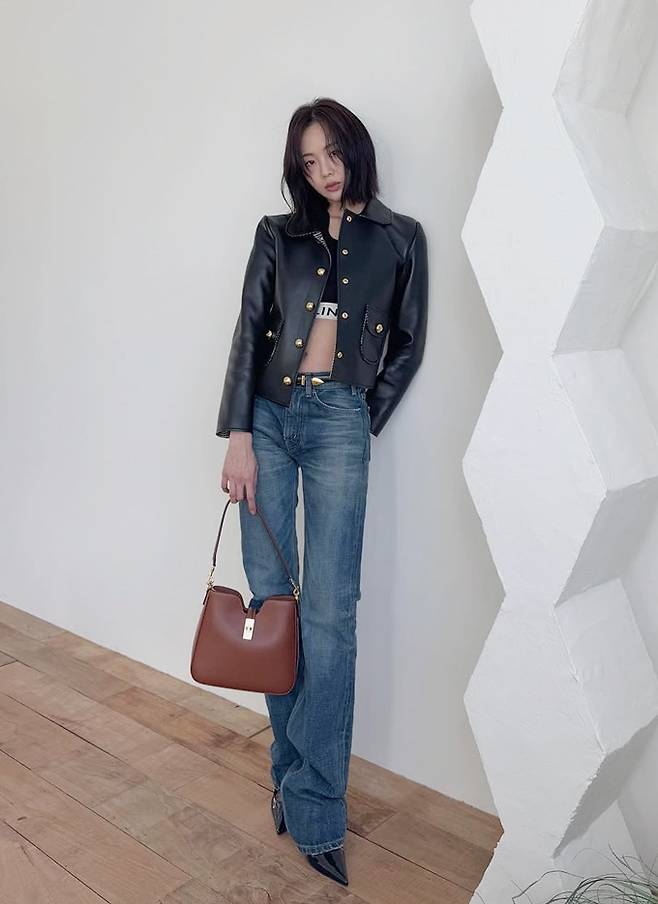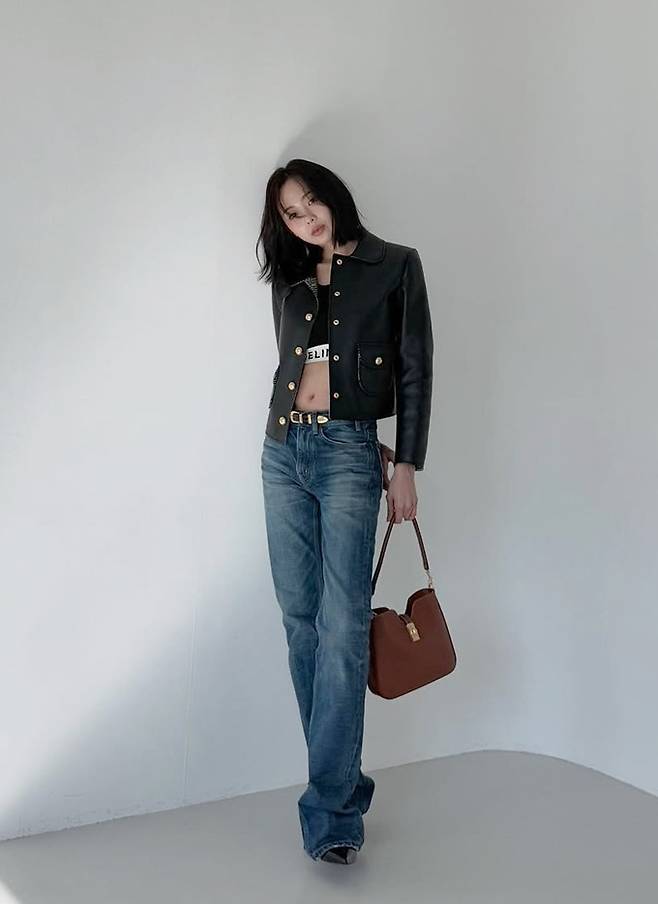 배우 금새록이 복근을 드러낸 가죽 재킷으로 힙한 걸크러시룩을 선보였다.