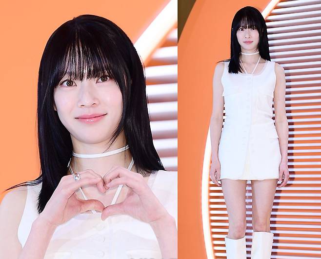 공승연은 전면에 큼직한 포켓이 장식된 상의와 하의가 하나로 연결된 듯한 버튼 디테일 미니드레스를 착용해 청량한 화이트 스타일링으로 경쾌하면서도 시크한 분위기를 동시에 연출했습니다.