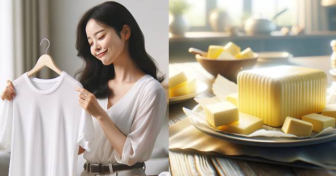 일부 민감한 소재의 의류엔 버터가 맞지 않을 수 있으니, 보이지 않는 작은 부위에 먼저 시험해보는 것이 좋습니다.