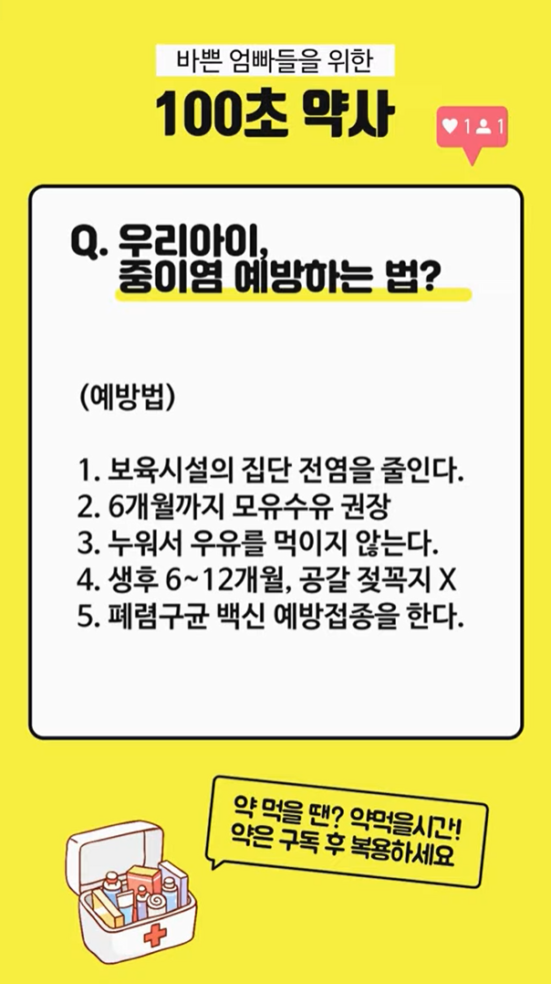 아이들의 이관이 유독 짧고 평평해서 중이염이 잘 재발되기는 하지만 이런 예방법들을 한번 체크해보시면 좋겠네요~