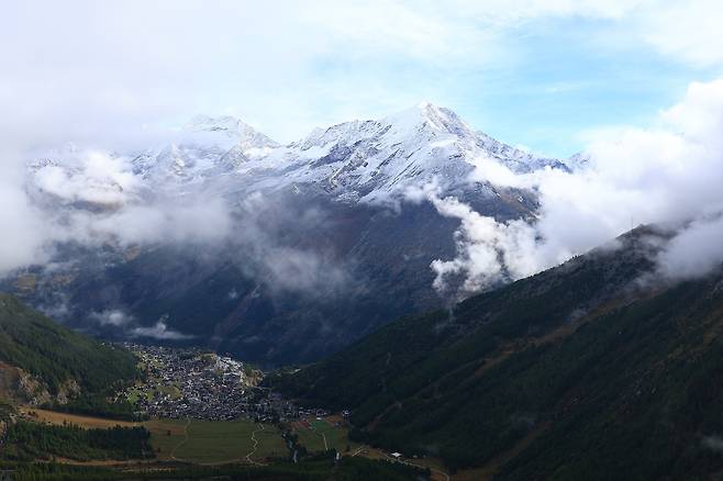 사스페까지 가는 길은 쉽지 않았다. 체르마트에서 고르너그라트 산악 열차를 타고 비와 안개구름에 완전히 동화되어 고르너그라트 전망대를 왕복한 뒤 고산병 증세를 안고 체르마트역으로 돌아와 다시 기차를 타고 스탈덴 사스Stalden-Sass역. 15분을 기다려 산을 휘감는 버스를 타고 30분간 쉼 없이 고도를 높인 뒤에야 사스페 버스 정류장에 도착했다. 그나마 다행인 것은 버스 종점이라 정류장을 지나칠까 조바심을 내지 않아도 됐다는 것이다.