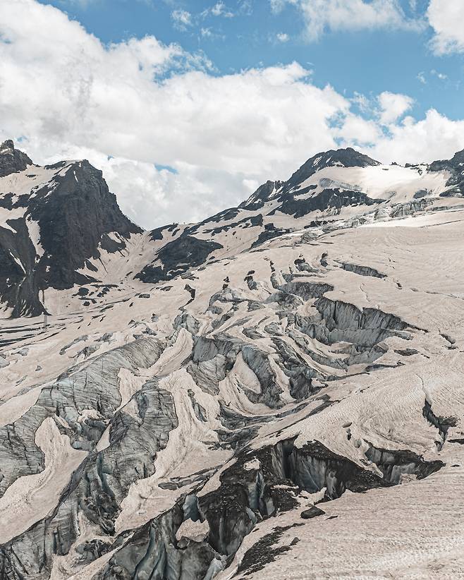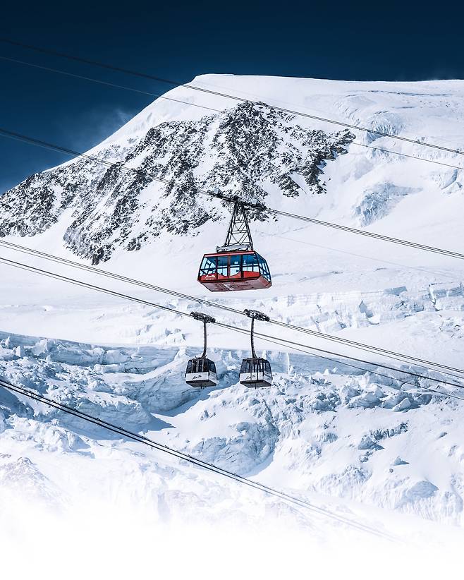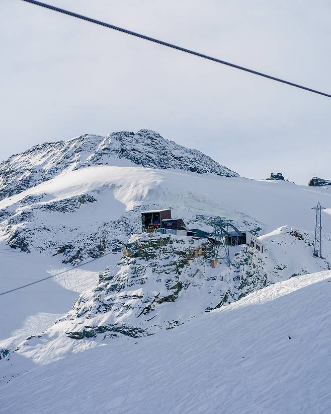 자, 쉴 틈이 없다. 관광 안내소에서 알려준 대로 랭플루행 케이블카를 타고 빙하가 있는 랭플루 정류장으로 올라왔다. 해발 2,870m, 거뜬하다. 머리 위, 발아래, 스위스 빙하가 눈의 여왕의 날카로운 손가락처럼 굳어 있었고, 거칠게 거뭇거뭇 갈라진 손가락 틈을 바라보자 두려움도 약간 일었다. 내 삶에 비하면 태초나 다름없을 빙하 쪽으로 하찮은 입김을 몇 번 불어넣고, 설상차가 지나는 소음을 등지고 정류장 레스토랑에서 커피를 마셨다. 본 조비, 구구 달스, 스매싱 펌킨스, 줄지어 나오는 90년대 록 음악을 다 알고 있다니, 어지간히도 살았다. 커피를 마시고, 카페인이 주는 인간적 위로와 오래된 취향이 주는 수줍은 위안에 대해 생각한 뒤, 어쨌건 커피보다 맥주를 마시고 싶다는 어른의 생각에 휩싸여 하행 케이블카에 올랐다.