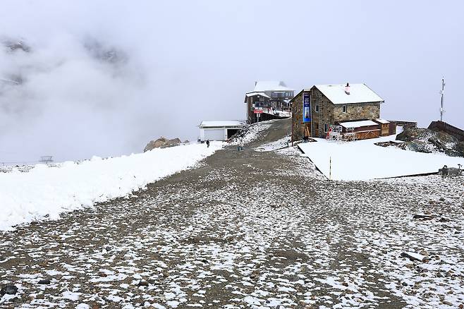 펠스킨 케이블카는 여전히 빨간색이었지만, 뮤직비디오보다 더 크고 각지고 날렵해졌다. 정류장에서 나와 조지 마이클이라도 된 듯 한 바퀴 둘러보면 제설기가 눈앞까지 인공 눈을 뿌려대고 있고, 그 위를 설상차가 다지고 고르며 저 멀리까지 스키 코스를 잇고 있었다. 펠스킨도 해발 3,000m 지역이라 살짝 휘청이는 두통이 느껴졌다. 커피가 필요했다. 정류장에서 멀지 않은 거리를 왔다 갔다 하는 것만으로도 오늘 뭔가 하나는 했다는 보람이 느껴져 조지 마이클에게 경의를 표한 뒤 케이블카를 타고 아래로 내려왔다.