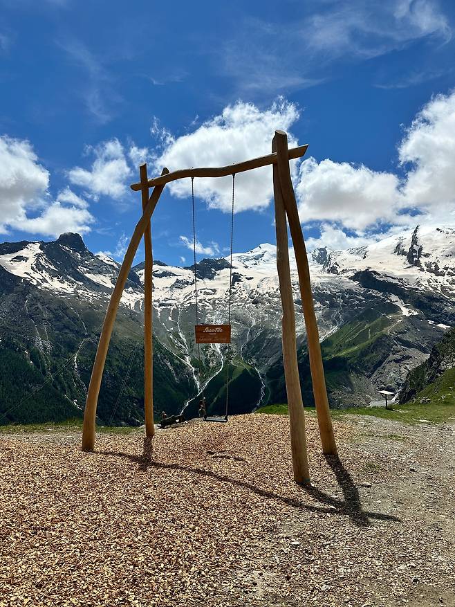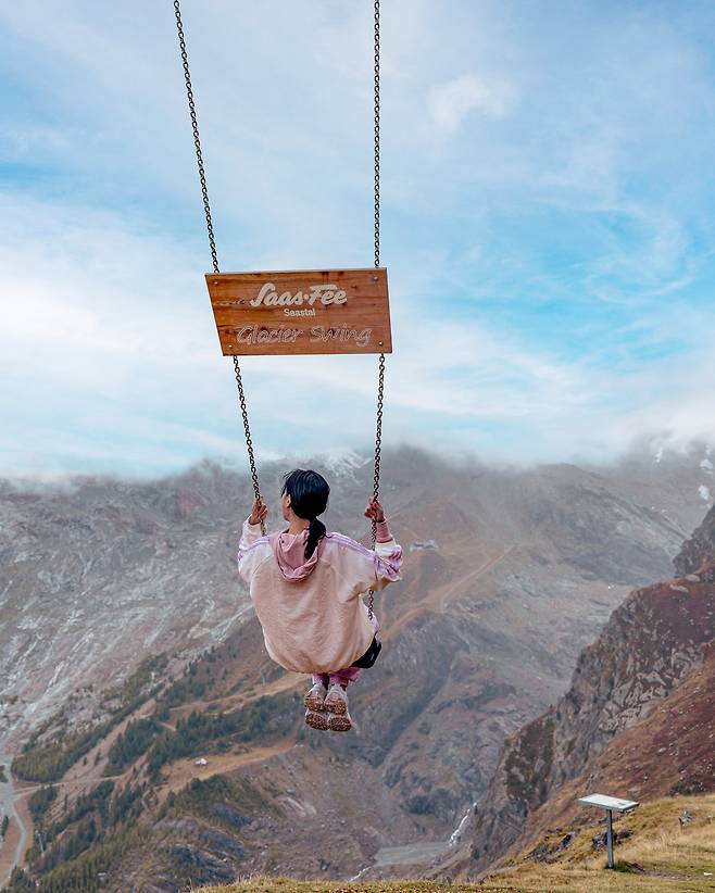 해닉Hannig 케이블카 정류장에 내려 같은 건물로 이어져 있는 베르그레스토랑에서 뢰스티를 시켰다. 맥주 한 잔과 스위스 청량음료 리벨라도 하나. 이곳에 올라오는 이유는 요즘 한창 사진 명소로 유명한 알프스 그네를 타기 위해서다. 그네를 타고 알프스로 발돋움하는 춘향, 아니 하이디, 둘 다 너무 오랜 조상들이군, 누구를 앉히면 참신한 상상이 될까. 접시에 남은 치즈와 감자를 싹싹 긁어 입안에 털어 넣은 뒤, 사스페 그네에 앉아 두어 번 반동을 주고, 거의 제자리에서 그네에서 내려 소똥 많은 산길을 살얼음 딛듯, 조심조심 걸어 내려왔다.