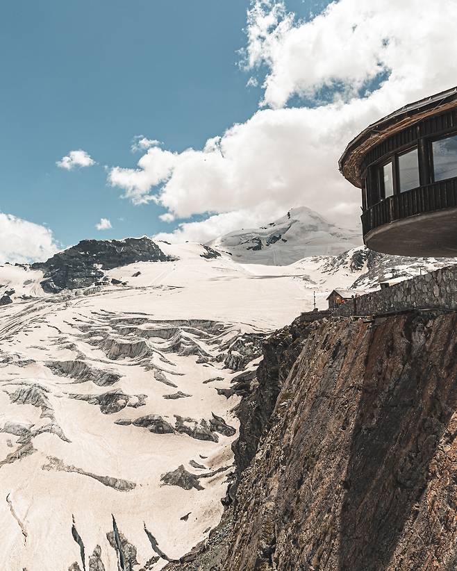 침침하고 적막한 버스 정류장을 나와 어둡고 적막한 상점가를 지나 호텔 크리스티나의 묵직한 나무문을 열었다. 불 켜진 간판을 지나칠 때마다 허기가 발동했지만, 일단 가방 무게와 축축한 밤안개에서 벗어나고 싶었다. 체크인을 하고, 내일 아침 케이블카를 무료로 탈 수 있는 사스탈 카드를 신청했다. 방으로 들어가니 먹을 수 있는 건 수돗물뿐이었다. 스위스에는 생수 대신 수돗물을 받아 마실 물병을 비치해 두는 호텔이 많다. 알프스 빙하에서 흘러온 수돗물로 샤워를 하고 삼키기도 하며 몸을 데우고 나서 내일 아침 조식을 기약하자, 라디에이터에 바짝 붙어 누웠다.