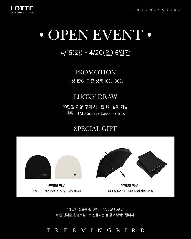 또한 트리밍버드 롯데백화점 부산본점 스토어 오픈을 기념해