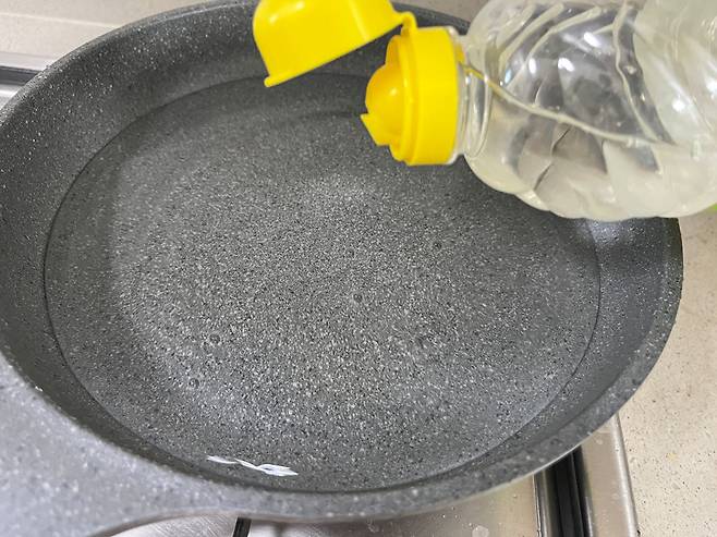 마지막으로 후라이팬을 기름으로 코팅합니다. 식초물 끓인 후 기름으로 2~3차례 닦아내면 미처 제거되지 못한 불순물을 제거할 수 있습니다.