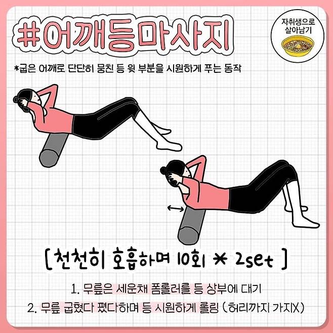 어깨 아래~중간 등까지 천천히 위아래로 굴림