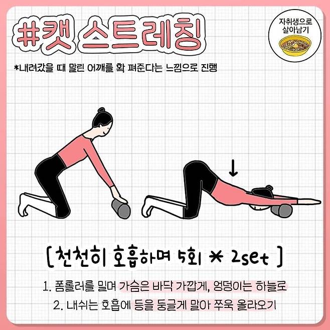 폼롤러를 등 아래 가로로 두고, 허리를 받쳐주는 식으로 사용