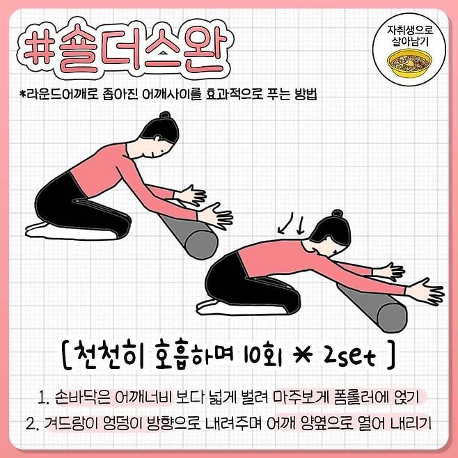 어깨 아래~중간 등까지 천천히 위아래로 굴림