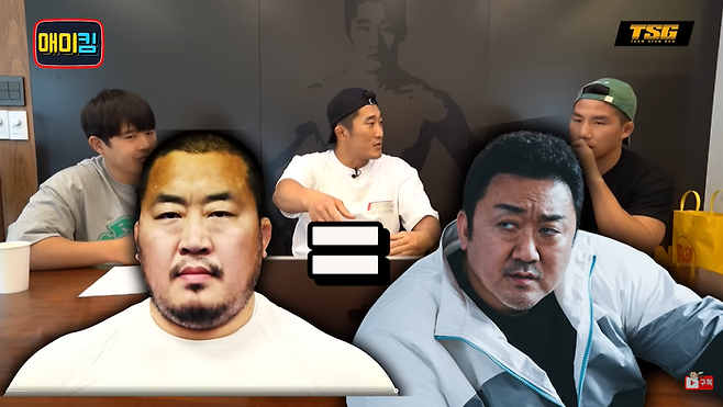 김동현은 “코리안탑팀 전찬열 대표님도 엄청 몸 좋으시잖아. (마동석과) 약간 인상이 비슷하시다. 딱 힘 센 사람 관상”이라고 말했다.