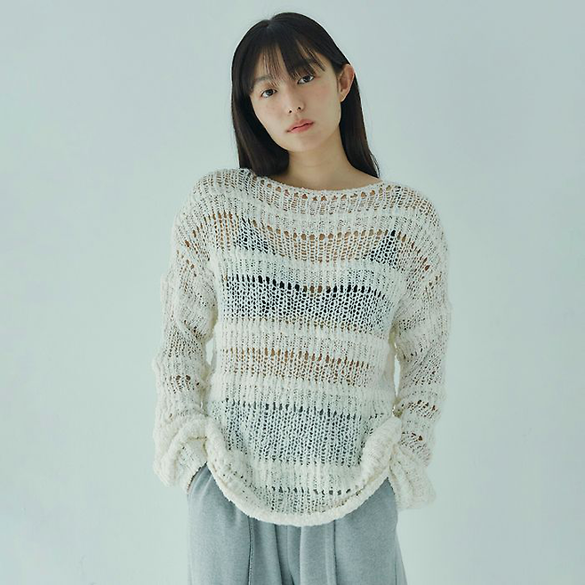 문가영이 착용한 **니트는 GBH Apparel(지비에이치 어패럴)의 ‘팝콘 니트’**로, 특유의 입체적인 텍스처가 포인트다.