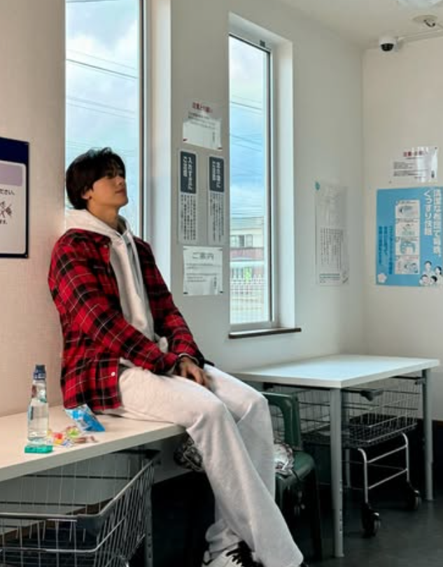 박형식 님은 강렬한 빨간색 체크 자켓으로 시선을 사로잡았어요. 여기에 그레이 계열의 후드티를 레이어드해 캐주얼한 분위기를 더했죠. 하의로는 편안한 핏의 조거팬츠를 매치해 활동성을 높이면서도 스타일리시한 무드를 연출했어요. 전체적으로 꾸민 듯 안 꾸민 듯한 내추럴한 사복룩이 돋보였답니다.