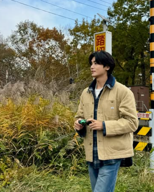 베이지 재킷에 체크 남방을 레이어드 해서 캐주얼하면서 댄디한 무드를 연출했죠. 특히 베이지와 체크 패턴의 조합은 따뜻한 느낌을 자아냈죠.