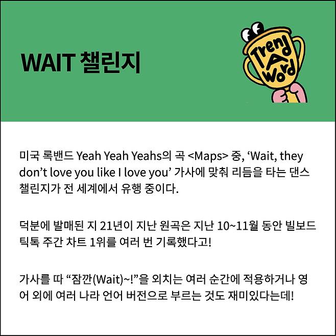 노래에서 Wait~~을 길게 늘여 부른 게 포인트라서