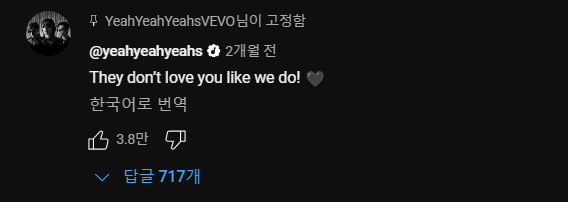 위 뮤직비디오 영상에 댓글을 남겼다.