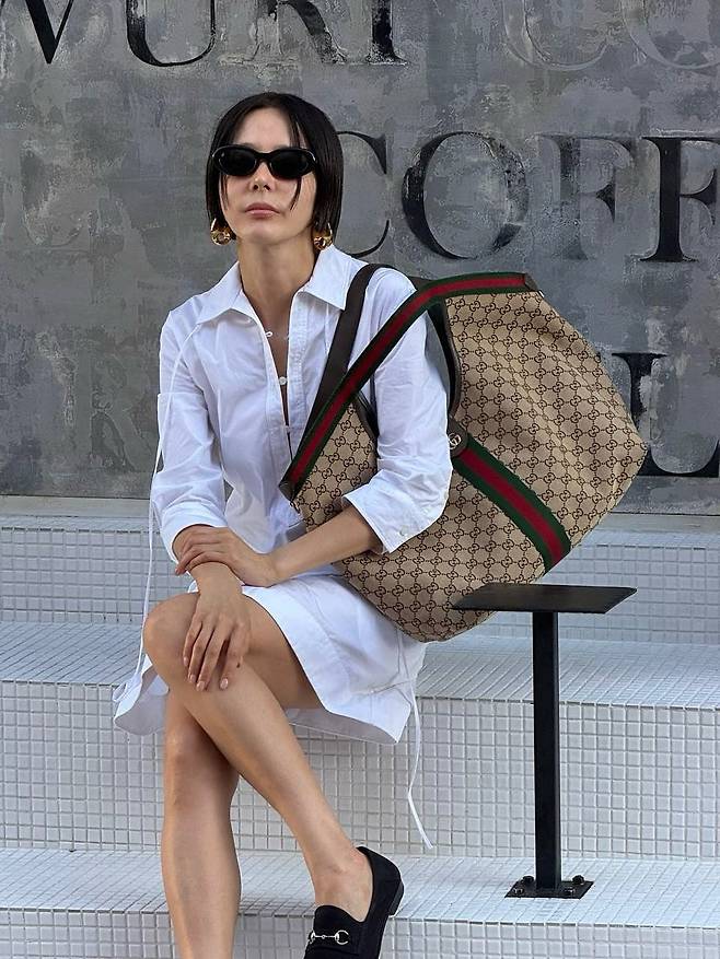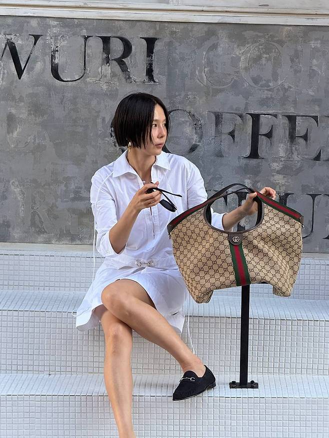 방송인 김나영은 이 가방을 활용해 심플한 착장에 한 끗 차이의 스타일을 완성했다.