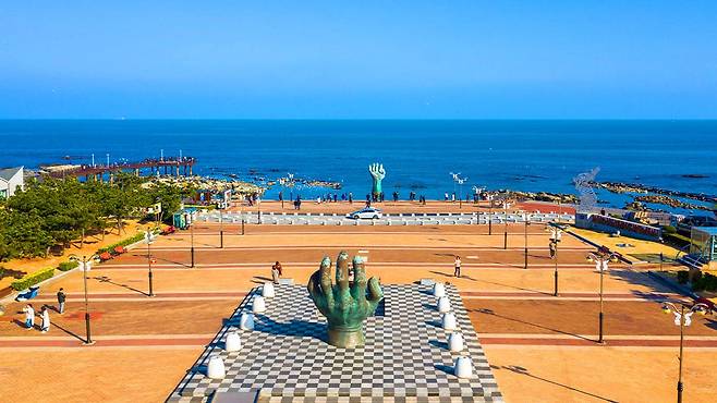 두 손이 마주 보는 장면은 마치 바다와 육지가 하나로 이어진 듯한 장관을 보여주며, 보는 이에게 묵직한 울림을 남긴다. 여기에 삼국유사에 기록된 연오랑세오녀 설화의 조형물이 함께 어우러져 있어, 단순히 풍경을 감상하는 것 이상의 이야기를 여행객들에게 전해준다.