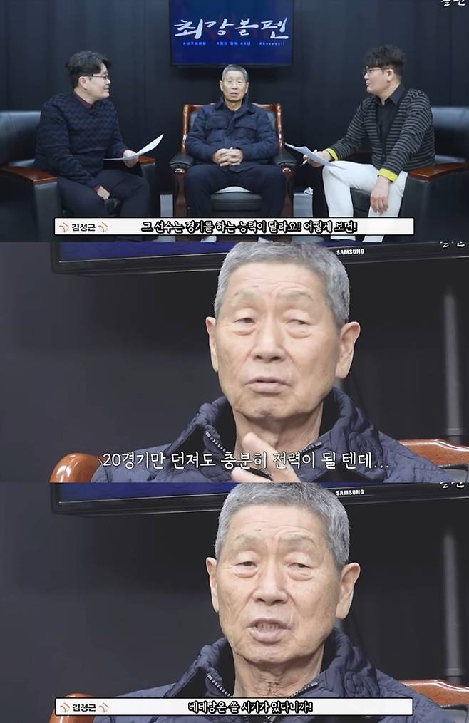 [TV리포트=성민주 기자] JTBC '최강야구' 김성근 감독이 유희관의 이른 은퇴에 아쉬운 마음을 드러냈다.