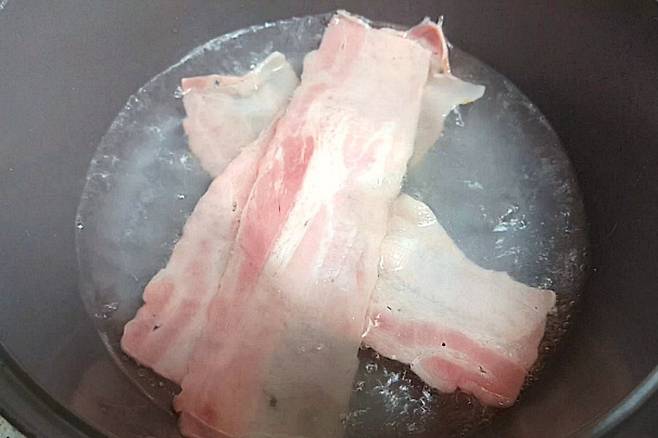 건강하게 드시려면 베이컨을 뜨거운 물에 살짝 담갔다 빼서 사용해 주세요.