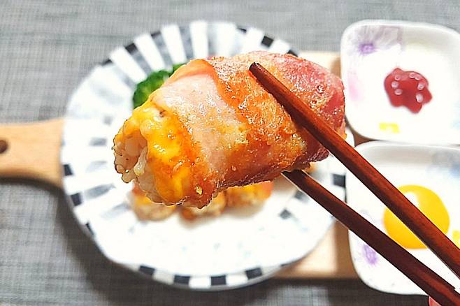 짭조름하고 바삭한 베이컨에 고소한 치즈가 어우러져 정말 맛있습니다. 뭔가 고급진 주먹밥 느낌이 나요. 찬밥 아니어도 별미로 만들어 드시기 좋습니다^^*