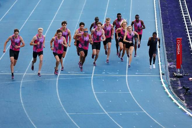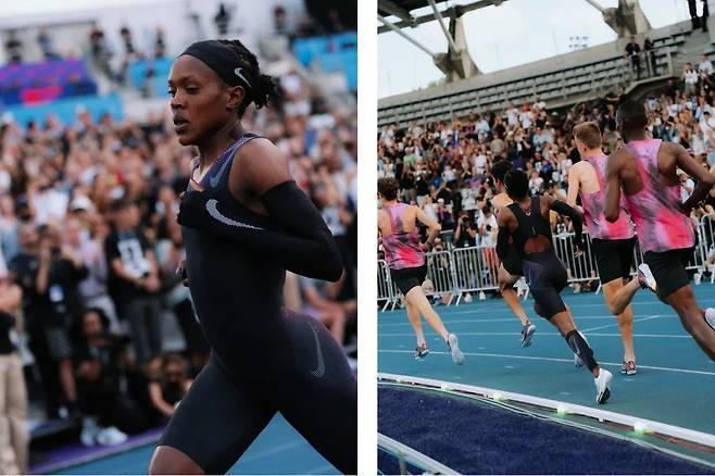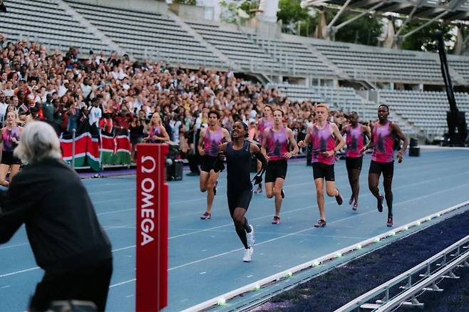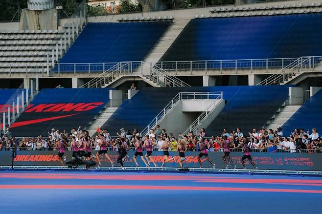 브레이킹 4는 파리 샤를레티 경기장에서 열렸습니다. 경기장을 가득 메운 4,500명의 관중이 숨을 죽인 채 그녀를 기다리고 있었죠. 페이스 키프예곤이 트랙 위에 모습을 드러내는 순간, 공기가 살짝 바뀌는 듯했어요. 작고 단단한 체구. 키 158cm. 실제로 마주한 그녀는 그보다 더 작게 느껴졌습니다. 그 작은 몸에서 어떻게 그런 폭발적인 에너지가 나오는 걸까, 놀라움과 경외심이 동시에 밀려왔어요. 게다가 그녀는 혼자가 아니었습니다. 여자 2명, 남자 11명, 총 13명의 페이스메이커가 그녀의 도전을 돕기 위해 함께 트랙에 섰습니다. 그 모든 시선과 기대를 마주한 채, 페이스 키프예곤은 그날 가장 무거운 발걸음을 내딛었을지도 몰라요.