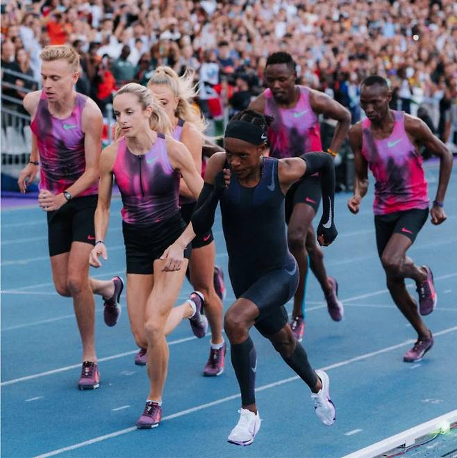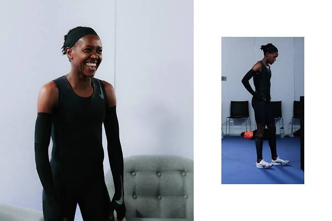 이건 페이스 키프예곤 혼자만의 도전이 아니었어요. 나이키는 그녀가 트랙 위에서 최선을 다할 수 있도록, 지금껏 갈고닦은 기술력을 아낌없이 쏟아부었죠. 그녀가 입은 옷, 신은 신발, 브라까지. 모든 게 오직 페이스 키프예곤을 위한 맞춤형 장비였습니다.