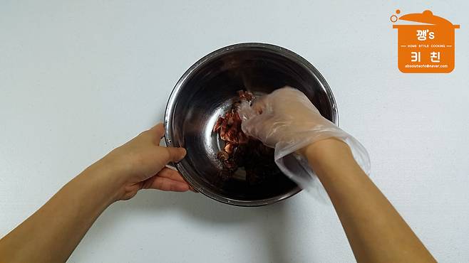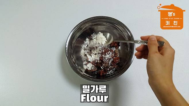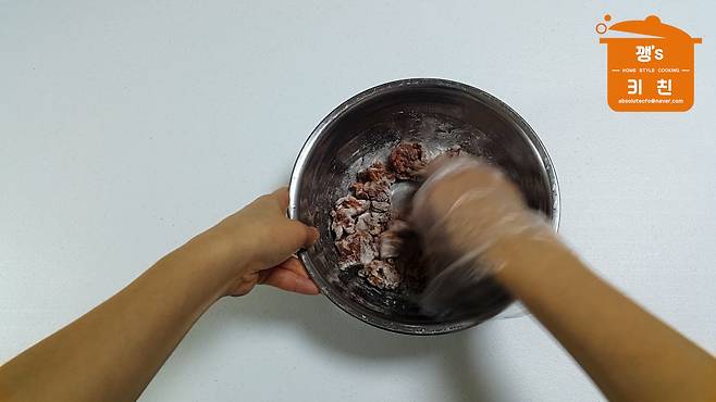 2. 밀가루 1큰술 넣고 고기 주무르기