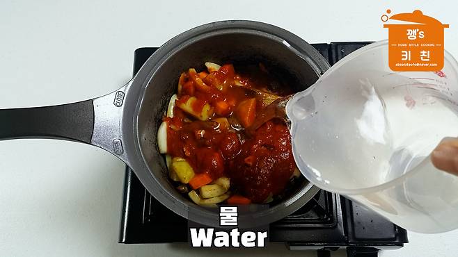 재료들이 잠길 정도의 물을 부어줍니다