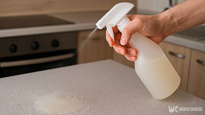 스프레이 통에 쌀뜨물을 담아 조리대에 넓게 분사하고 5분 정도 기다리면, 이 시간 동안 전분이 기름층과 접촉해 오염이 부드럽게 풀린다. 이후 수세미로 닦아내면 쉽게 떨어져 표면이 훨씬 깔끔해진다.
