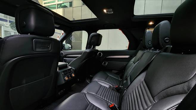 도어트림 상단에 위치한 윈도우 버튼과 별도의 암레스트도 디스커버리의 감성이다. 뒷좌석도 폭이 정말 넓고 천장도 높다 보니 상당히 편리하다. 전동식 리클라이닝, 독립 공조 등의 편의 장비도 당연 지원한다. 사각지대 경보 장치는 배려가 느껴지는 부분이다. 3열 거주성을 위해 2열 시트 높이를 낮춰 약간 불편할 수 있다는 평도 있는데, 저는 부정적인 생각은 일체 떠오르지 않았다. 3열 시트를 접은 상태에서 트렁크 공간도 상당히 넓고 높으며 전동식 폴딩이나 후륜축 차고를 낮추는 편의 장비도 제 기능을 담당하고 있다.