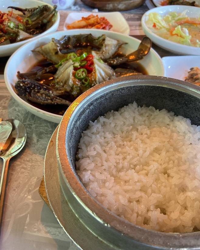 김포에 방문한다면 꼭 먹어야 하는 간장게장 맛집. 간장게장 정식 하나만 주문해도 상을 가득 채우는 화려한 밑반찬이 일품이에요. 하나하나 정성이 가득하고 감칠맛이 풍부~ 반찬을 집어 먹고 있으면 나오는 간장게장은 말해 뭐할까요. 보기만해도 군침이 줄줄 흐르는 비주얼! 일단 밥부터 비벼 봅시다.