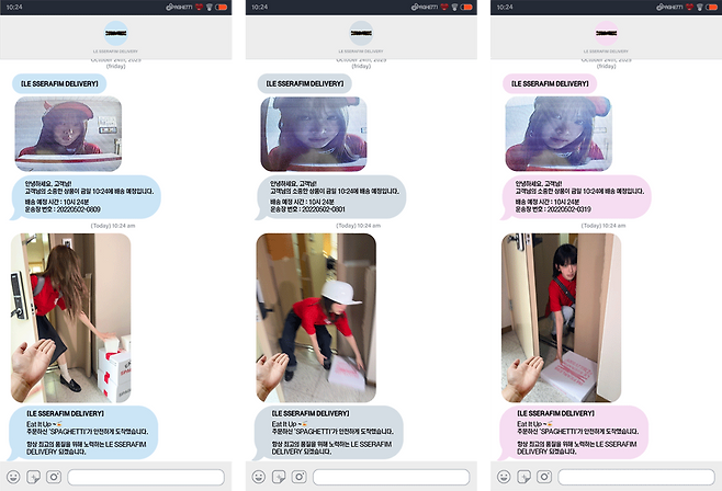 또한 X 공식 계정에서는 ‘LE SSERAFIM DELIVERY - 고객님의 SPAGHETTI가 곧 도착합니다’라는 제목의 프로모션 이미지를 공개했습니다. 원본 밈 이미지는 택배가 도착하자마자 잽싸게 집으로 들고 들어가는 어린이 고객의 사진이 찍힌 택배 배송 문자📩인데요. 해당 밈을 포맷을 활용하여 신속하게 배달을 진행하는 르세라핌 멤버들의 모습을 조명했죠! 콘셉트 포토에서 드러난 딜리버리 콘셉트를 활용하여 신곡이 배달되기까지의 과정을 귀엽고 유쾌하게 풀어낸 프로모션이었습니다. 이처럼 이번 컴백에서는 스파게티, 요리, 토마토라는 독특하고 일관된 소재를 활용하여 전반적인 컴백 프로모션을 하나의 콘셉트로서 묶어 전개한 모습이 인상적이라고 할 수 있겠습니다!💡