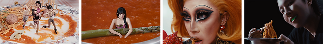뮤직비디오에서는 거대한 접시 위로 멤버들이 작게 표현되거나, 식재료🧅의 일부처럼 연출되는 기법이 자주 사용되었습니다. 이는 마치 스파게티의 재료처럼 씹고, 뜯기고, 즐겨지는 르세라핌의 모습을 형상화한 것으로 볼 수 있겠네요. 또한 드랙 아티스트💅의 출연으로 그들이 전하고자 하는 메시지는 확장됩니다. 주변에서 아무리 편견적인 시선으로 바라보더라도, 하고 싶은 스타일을 당당하게 드러내는 용기 있는 모습이죠.👏🏻 피처링으로 참여한 j-hope의 출연도 돋보입니다! 선글라스를 낀 스타일로 자신감 있는 태도를 드러내며, 젓가락으로 스파게티를 음미하는 모습은 한국적인 색채가 드러나기도 합니다.“나는 네 취향이자 숨듣명이고, 모든 줏대를 홀려 까에서 빠로” 만들어 버리겠다는 가사로 메시지에 더욱 힘을 얹어 주는 듯하네요!