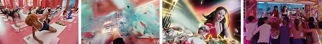 그러자, 이내 음악과 색감, 장면들이 전환되고 펑펑 퍼지는 폭죽을 배경🎆으로 멤버 전체가 뒤섞여 디스코 팡팡을 타기 시작합니다. 배달원, 요리사, 손님 할 것 없이 말이죠. 여기서 배달된 음식 ‘스파게티’는 르세라핌의 음악인 ‘SPAGHETTI’로 표현되는 듯합니다. 직업, 위치, 사람을 가리지 않고 누구나 행복하게 즐길 수 있는 음악이라는 점을 강조하는 것 같네요. 마치 꿈처럼 시시각각 변하는 듯한 콘셉트이지만 그러한 지점을 르세라핌만의 감성으로 완벽히 소화해 낸 트레일러 영상이었습니다!