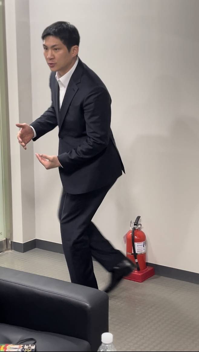 오지환은 이때부터 벌떡 일어섰다. 그리고 직접 동작을 취하면서 본인에게 생긴 변화를 시연과 함께 설명했다.