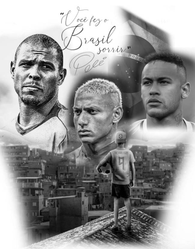 히샬리송은 브라질의 전설 호나우두와 현재 최고의 에이스 네이마르 그리고 자신의 얼굴을 그렸고, 그 위에는 브라질의 국기를 새겼다.