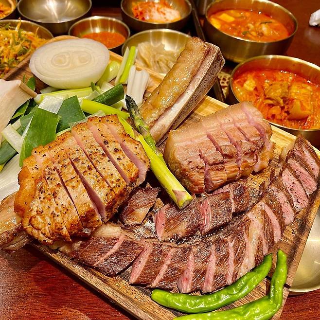 우대갈비와 삼겹살이 맛있는 방이옥은 송파나루역 2번 출구에서 가까운 위치에 자리잡고 있어 접근성이 좋은 우대갈비 맛집이다. SBS 생방송 투데이 3022회에 방영된 이력을 갖고 있으며 오크톤의 트렌디한 외관이 멀찍이서부터 눈에 띄는 곳이다. 넓직한 자리부터 프라이빗한 공간에 위스키와 와인도 즐길 수 있어 방이동에서 회식장소로도 많이들 방문하는 곳이다. 이 곳의 시그니쳐 메뉴는 특제 매운 양념소스를 넣어 16시간 동안 저온에서 수비드 조리한 후 오븐에 구워낸 매운 우대갈비. 플레이팅부터 눈을 즐겁게 하는 우대갈비는 자주 먹는 고기지만 특별한 요리를 먹는 기분을 들게 해줘 오감이 만족되는 곳.