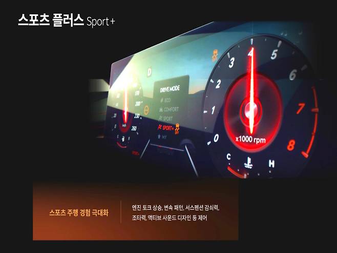 마지막으로 스포츠 플러스 모드는 엔진 토크, 변속 패턴, 서스펜션 감쇠력, 조타력 등을 제어하며, 급가속 후 급제동 시 빠르게 저단으로 변속해 재가속을 준비하고, 코너링 중에는 불필요한 변속을 억제해 차량 움직임을 정교하게 한다.