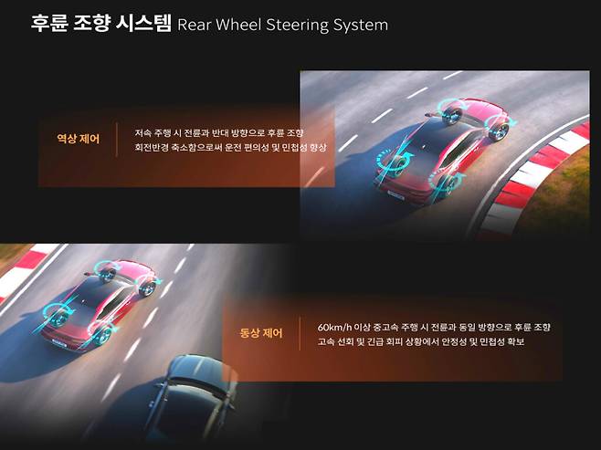 이와 함께 후륜 조향 시스템은 축간거리가 긴 차량의 회전 반경을 줄이고 더욱 민첩한 주행을 가능하게 하는 기술이다.