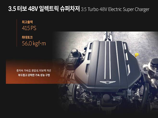 3.5T 48V 일렉트릭 슈퍼차저는 3.5L V6 터보 엔진에 48V 마일드 하이브리드 시스템과 전동식 슈퍼차저를 결합한 기술로 1,750rpm 미만의 저회전 구간에서 터보랙 현상을 약 53% 줄여 엔진 응답성을 향상시켰다.