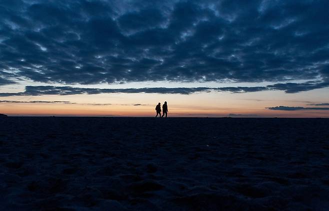 이른 아침이나 해질 무렵, 햇빛이 구름 아래를 비출 때