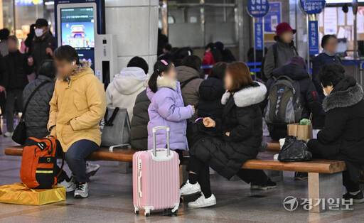 설 연휴를 하루 앞둔 8일 오후 수원역에서 귀성객들이 고향으로 가는 열차를 타기 위해 대기하고 있다.