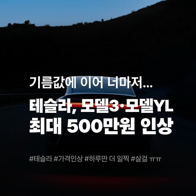 하지만 이런 시점에서 테슬라가 모델3와 모델YL 가격을 최대 500만원 인상하며 분위기는 또 한 번 달라지고 있습니다.